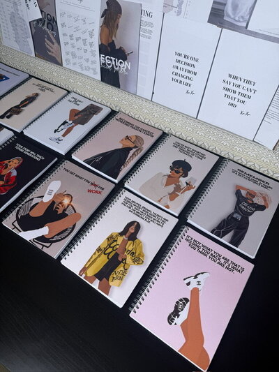 The notebooks are intentional. They're created to unite us. To be our own mirrors. Each cover reminding you of why you're doing what you do. Every blank page inside is an invitation for you to write your next chapter. Put together your master plan. To write and rewrite, scribble out and burn any page to release what's needed.